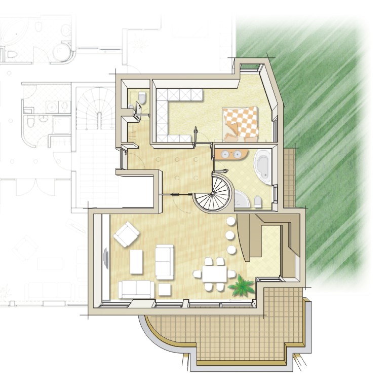 Gartenzugang eines reinen Erdgeschosses verknüpfen.